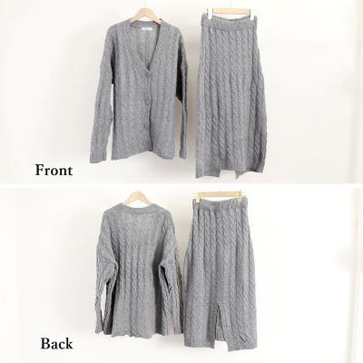 ゆったりラフに羽織れるカーディガンとニットスカートの上下セットアップ